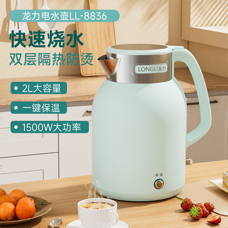 龙力电热水壶家用烧水壶316不锈钢热水壶容量自动断电开水壶